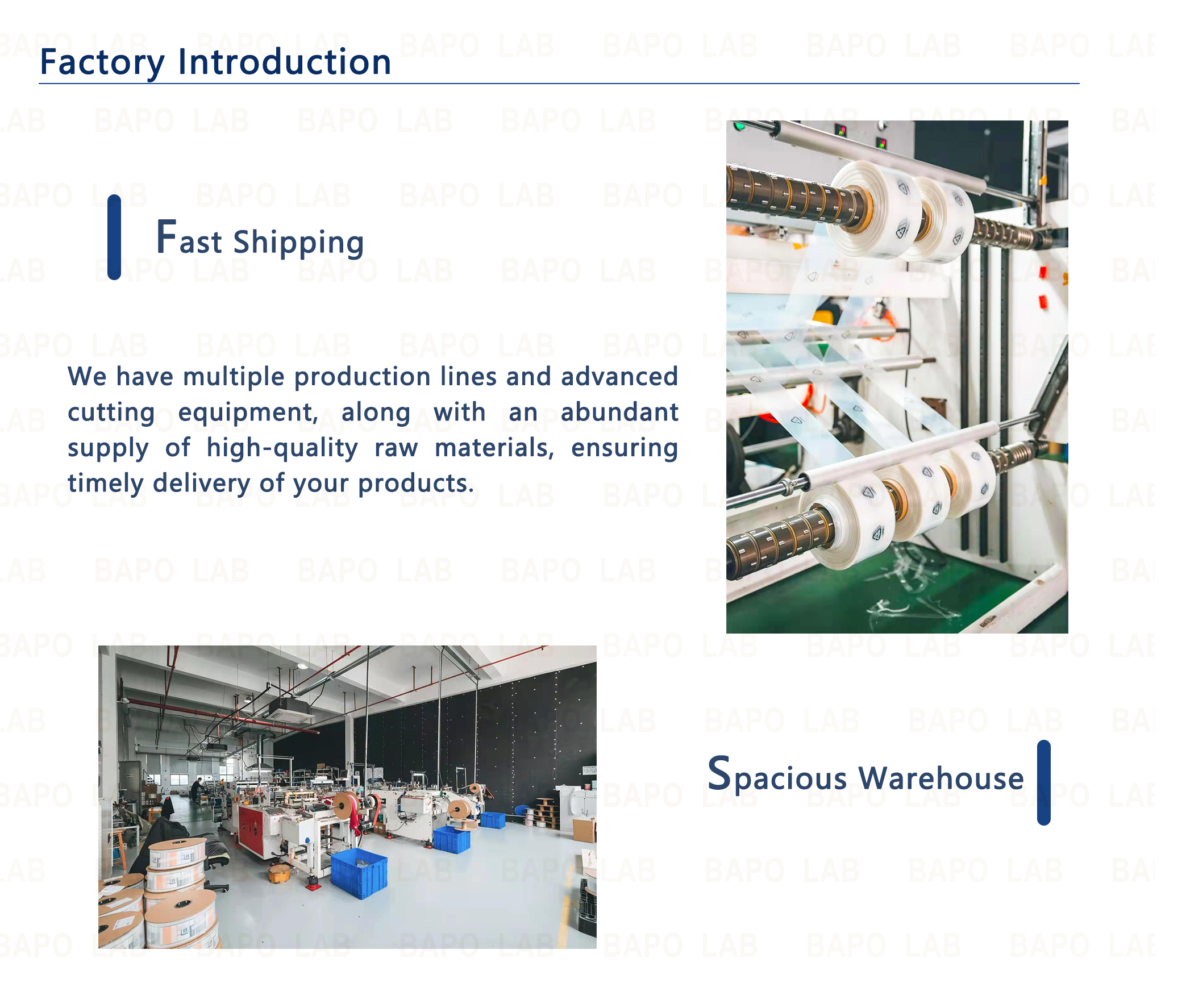 Bapo Lab provides variety of LDPE file, special function pre open bags, and provide customized design, printing which improve the packaging quality and transportation protection of your bags and make your product more unique.
